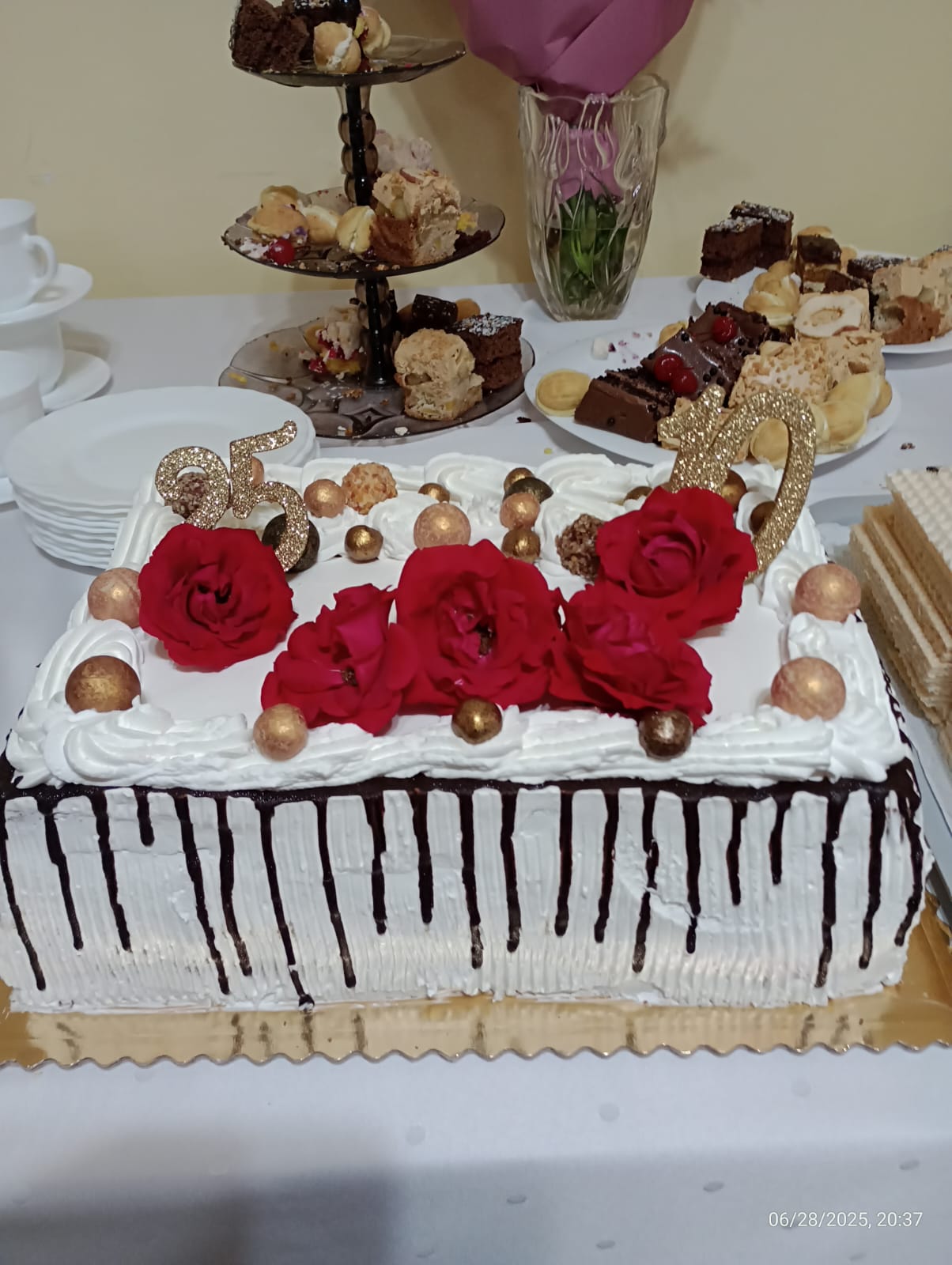 Po części oficjalnej jubilaci zaserwowali imponującą i smakowitą kolację wraz z przekąskami, których nie sposób było przejeść. Po kolacji zaś przyszedł czas na mniej formalną część imprezy, gdzie z pomocą zespołu muzycznego można było sprawdzić się w tańcu i szaleństwie parkietowym. W ramach łapania oddechu podano wyśmienity jubileuszowy tort.